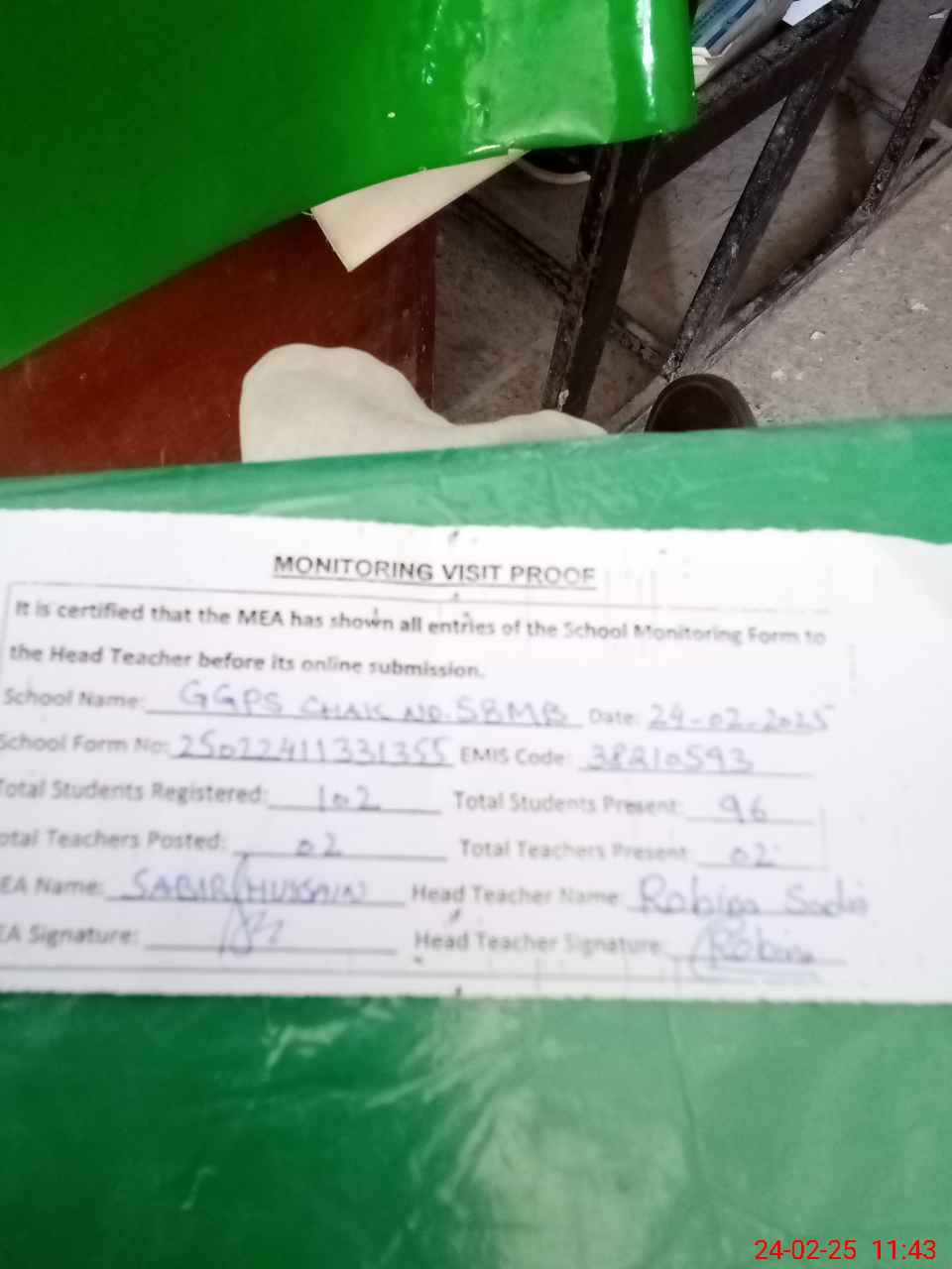 | EMIS Code: 38210593 | Name of School: GGPS CHAK NO. 58 MB | |||
