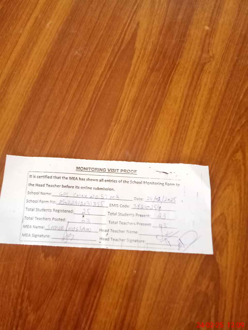 | EMIS Code: 38210254 | Name of School: GPS CHAK NO 57 MB | |||