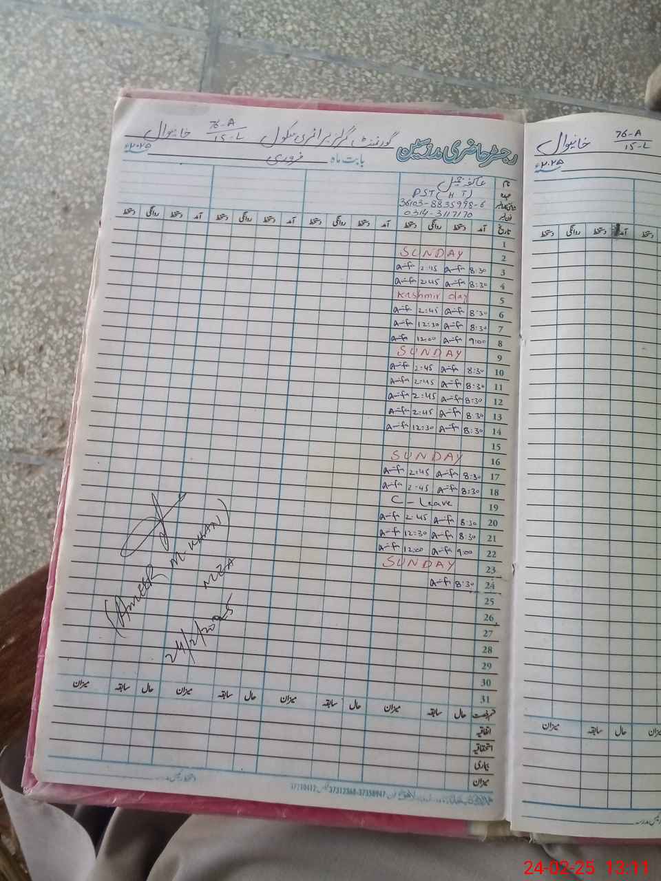 | Name: Ak**** Ja**** Designation: (School Headmaster's/Headmistress's) PST Phone/Cell Number: 03**** |