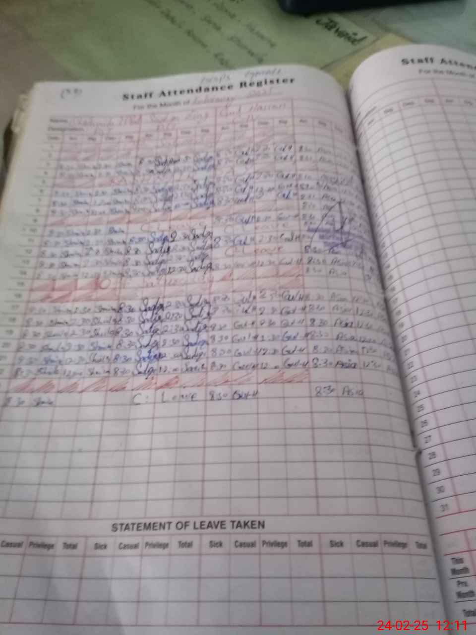 | Leave | Duty | Absent | Maternity | Medical | Ex- Pak |