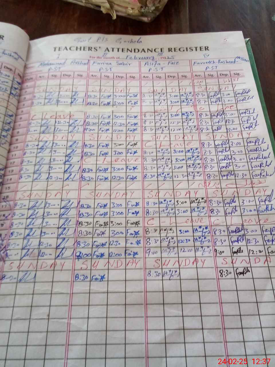 | CNIC | Full Name | Designation | R/C | Absence During Last Calender Month |