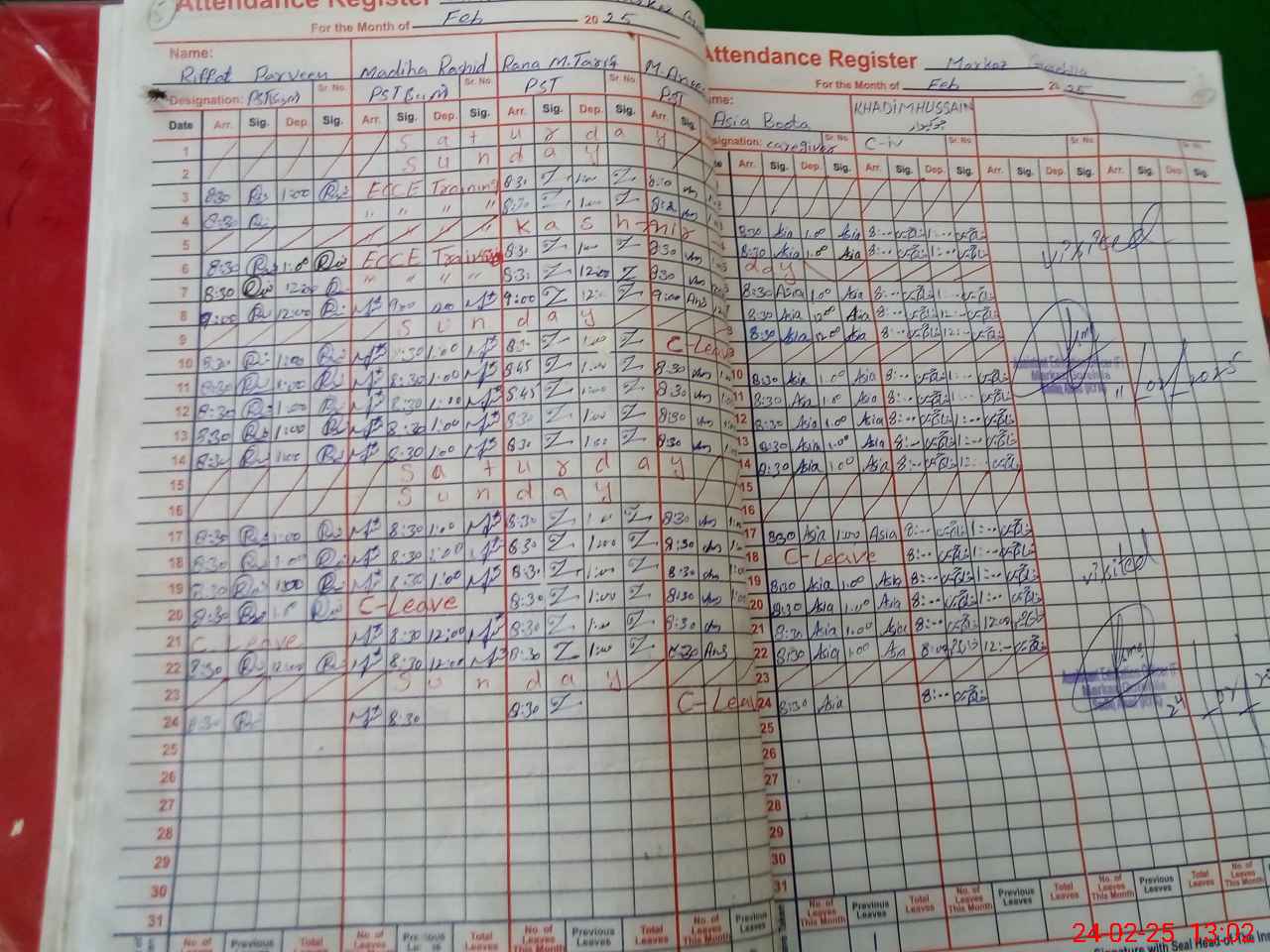 | CNIC | Full Name | Designation | R/C | Absence During Last Calender Month |