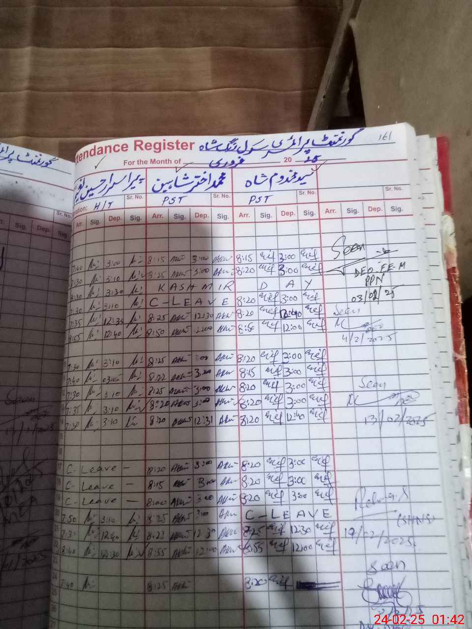 | CNIC | Full Name | Designation | R/C | Absence During Last Calender Month |