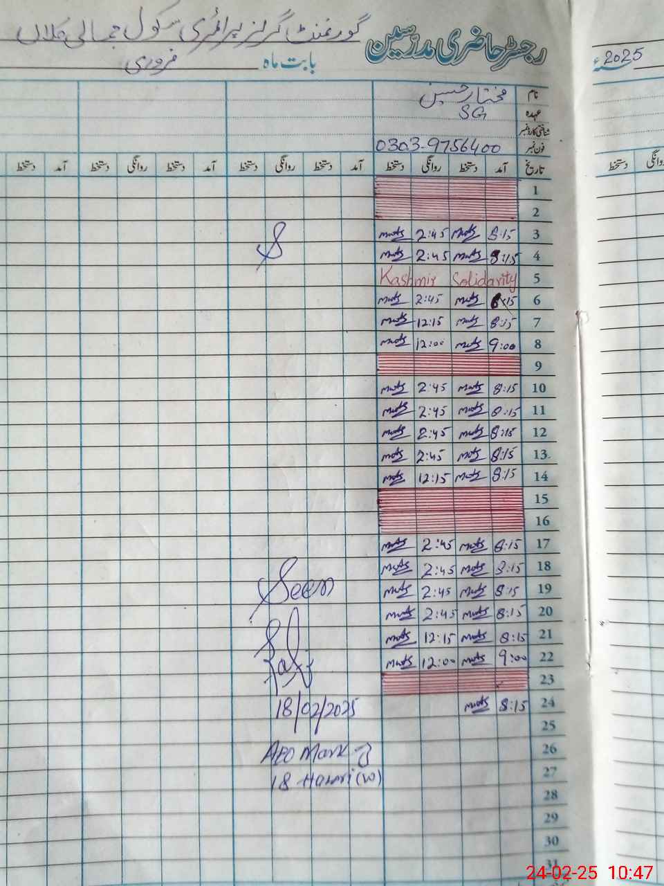 | Name: Su**** Af**** Designation: (School Headmaster's/Headmistress's) PST Phone/Cell Number: 03**** |