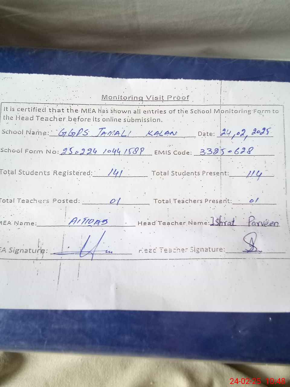 | EMIS Code: 33250628 | Name of School: GGPS JAMALI KALAN | |||