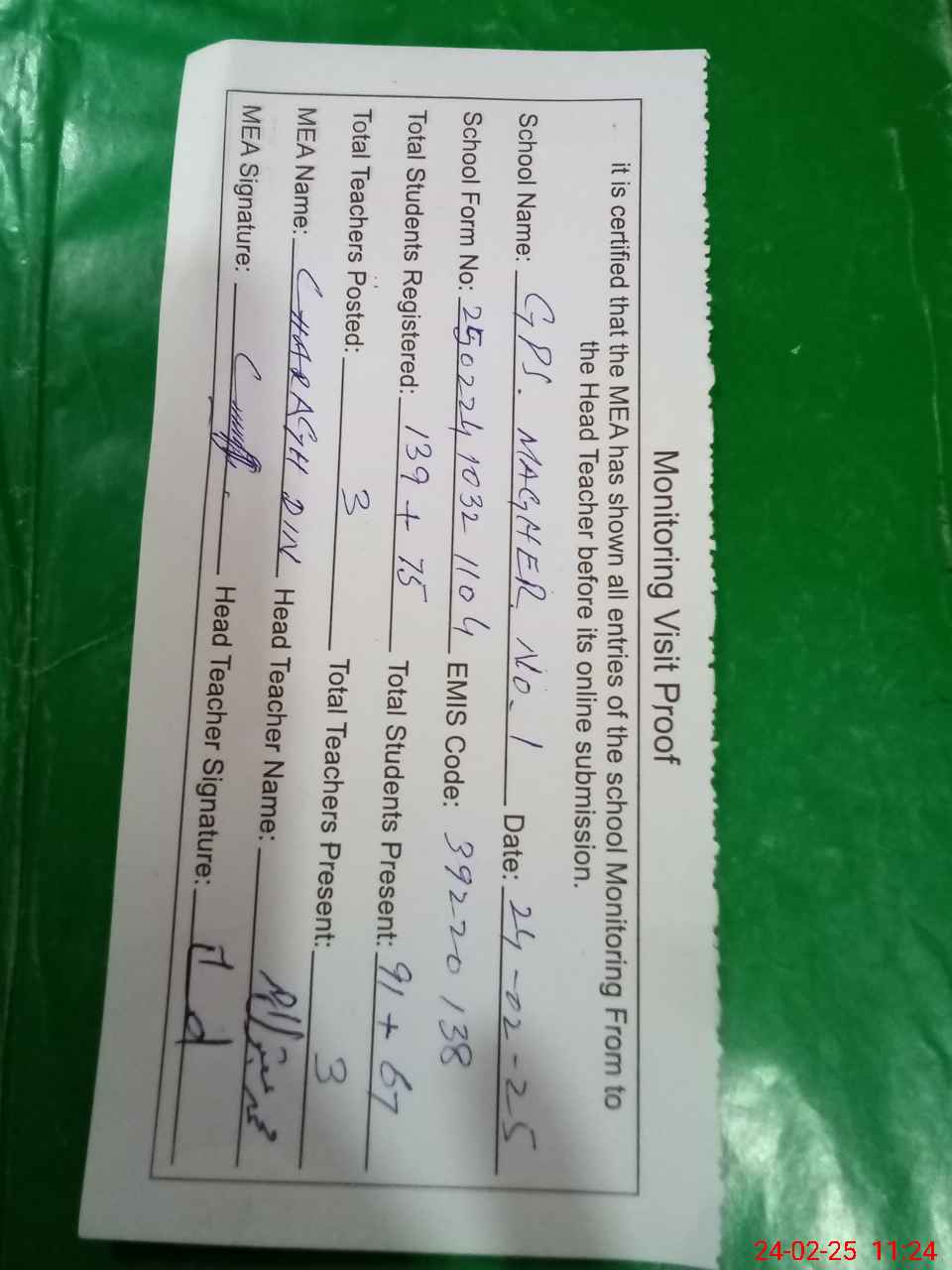 | EMIS Code: 39220138 | Name of School: GPS MAGHER NO. 1 | |||