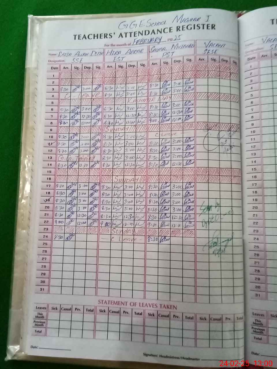 | Leave | Duty | Absent | Maternity | Medical | Ex- Pak |