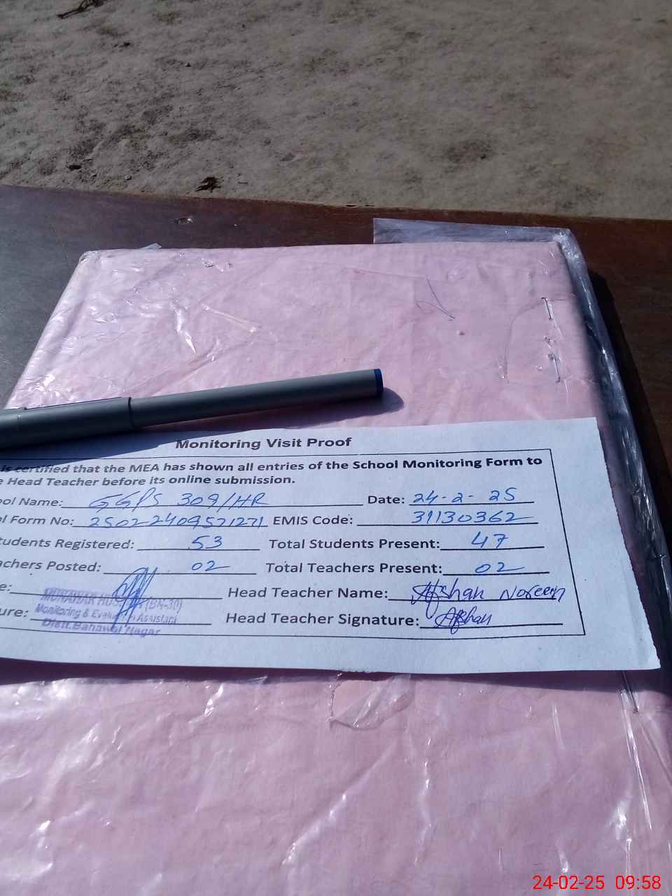 | EMIS Code: 31130362 | Name of School: GGPS CHAK 309/HR | |||
