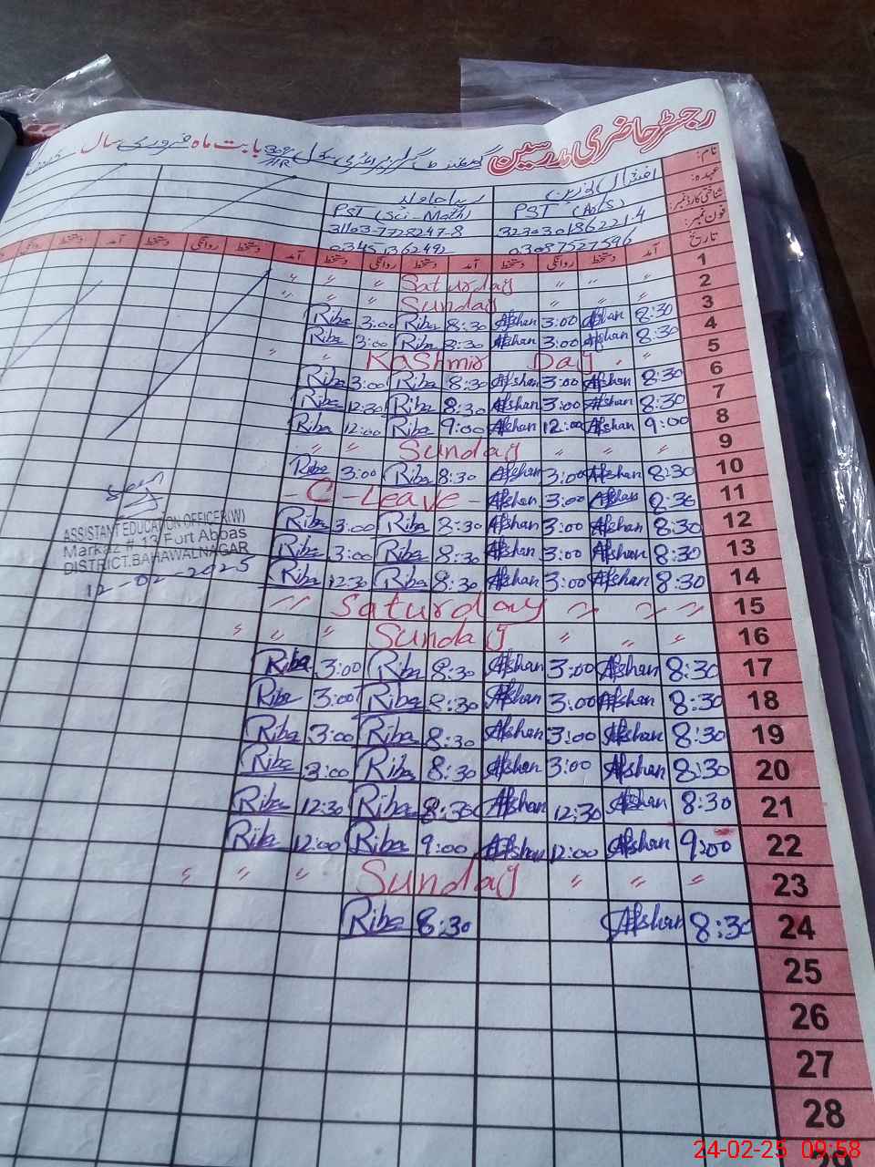 | District: BAHAWALNAGAR | Tehsil: FORT ABBAS | Markaz: FTS-XIII-FEMALE | Level: Primary | |