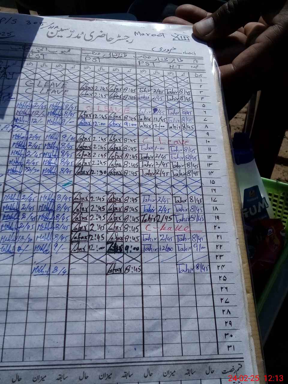 | CNIC | Full Name | Designation | R/C | Absence During Last Calender Month |