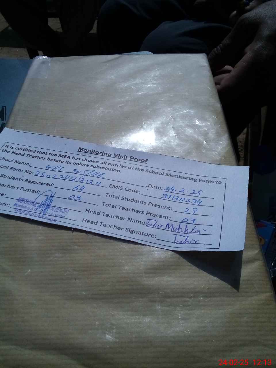 | Name: TA**** MU**** Designation: (School Headmaster's/Headmistress's) PTC/JV Phone/Cell Number: 03**** |