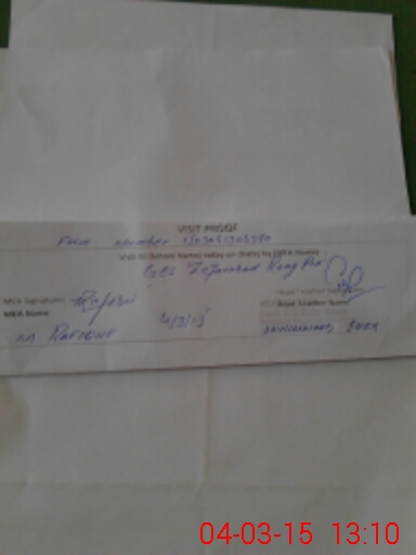 | Attendance Register | Head Teacher | MEA with School | Visit Proof |