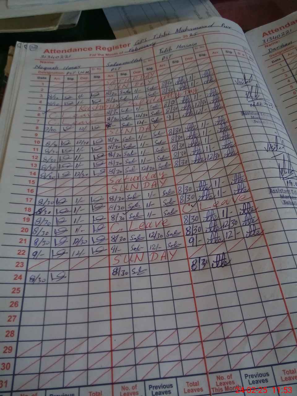| CNIC | Full Name | Designation | R/C | Absence During Last Calender Month |