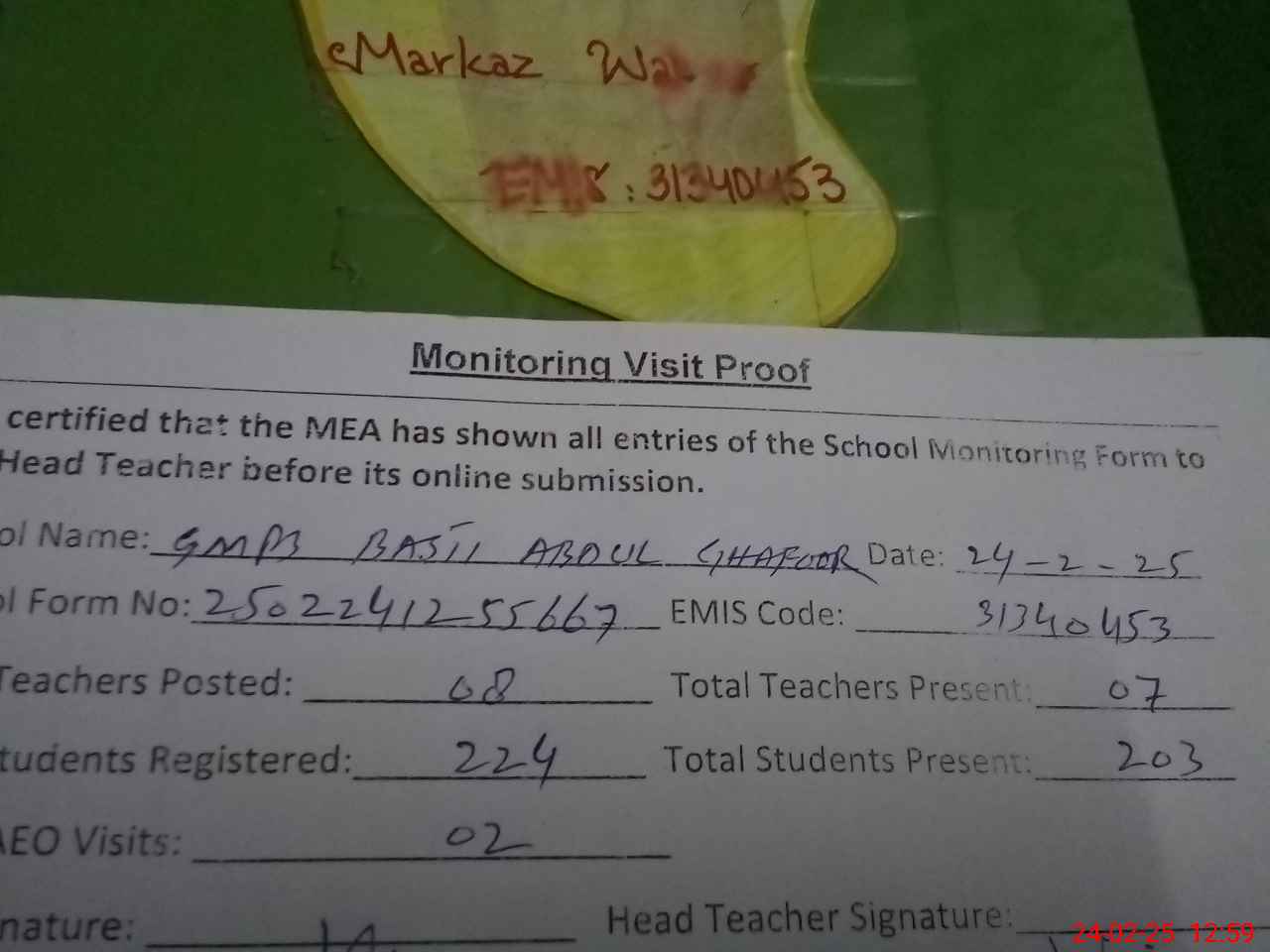 | EMIS Code: 31340453 | Name of School: GMPS BASTI ABDUL GHAFOOR | |||