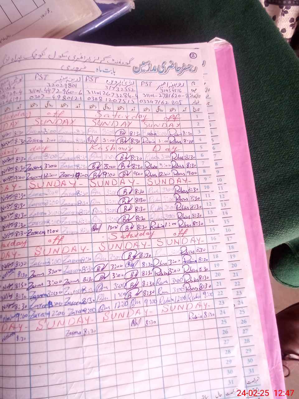 | CNIC | Full Name | Designation | R/C | Absence During Last Calender Month |