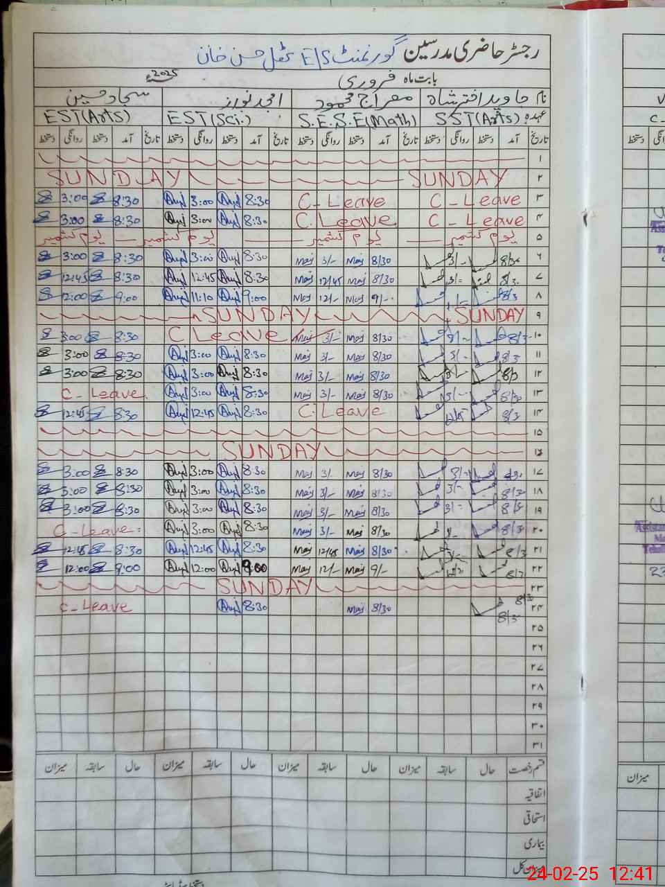 | CNIC | Full Name | Designation | R/C | Absence During Last Calender Month |