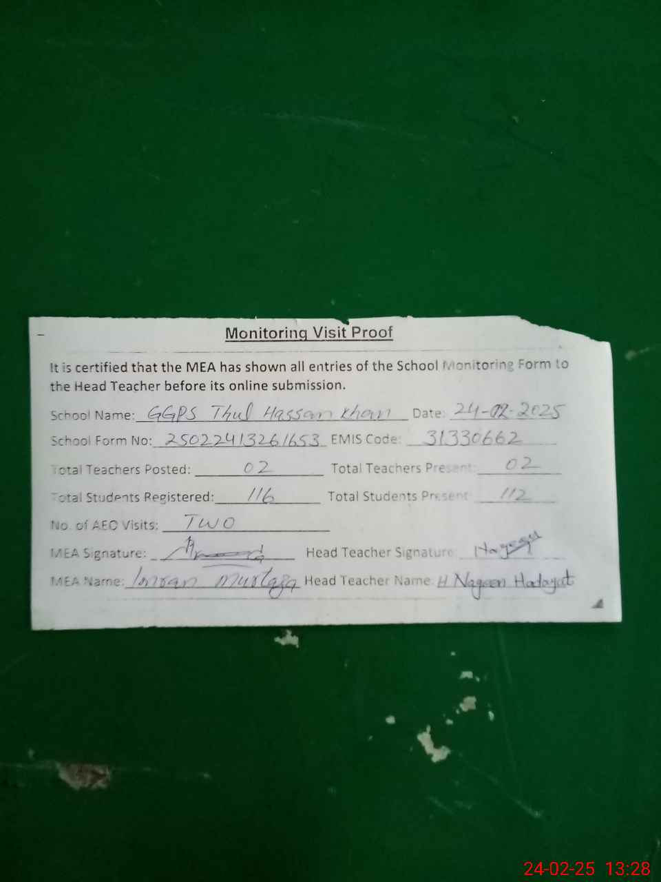 | EMIS Code: 31330662 | Name of School: GGPS THUL HASSAN KHAN | |||