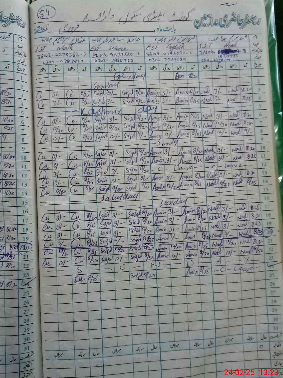 | Name: Mu**** Na**** Designation: (School Headmaster's/Headmistress's) SST (MATH PHYSICS) Phone/Cell Number: 03**** |