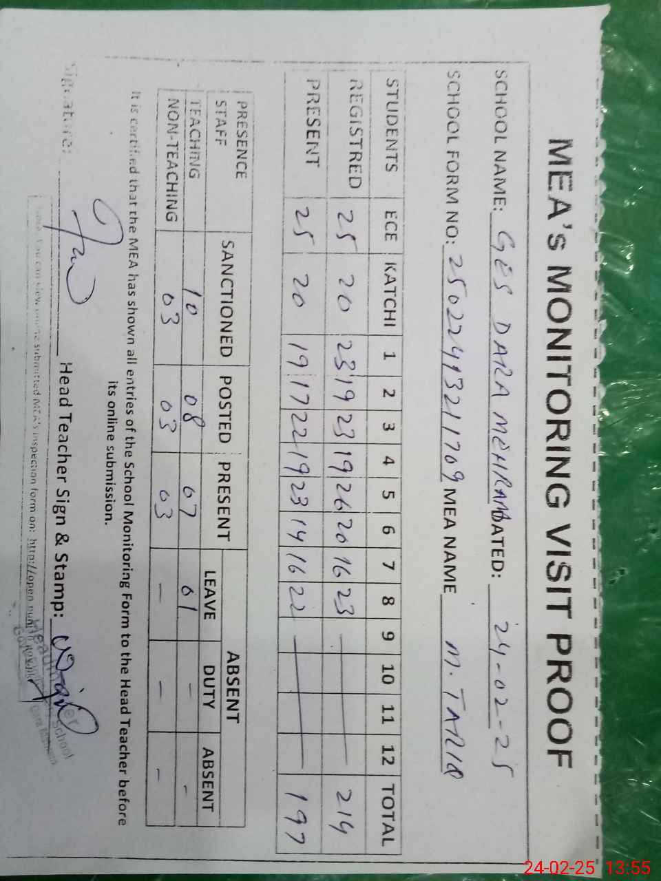 | EMIS Code: 36410074 | Name of School: GES DARA MEHRAM DARA, ABDUL HAKIM | |||