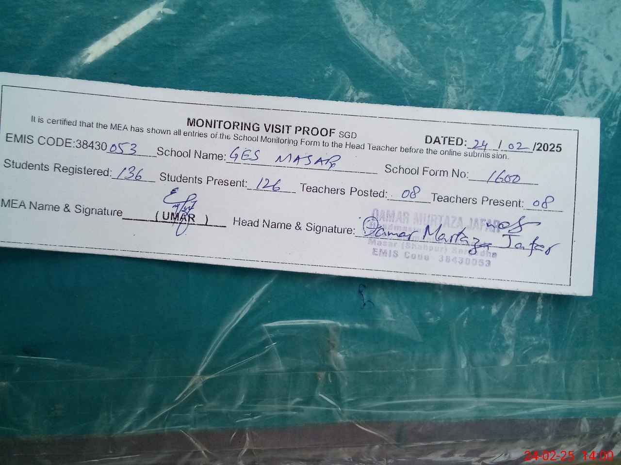 | EMIS Code: 38430053 | Name of School: GES MASAR | |||