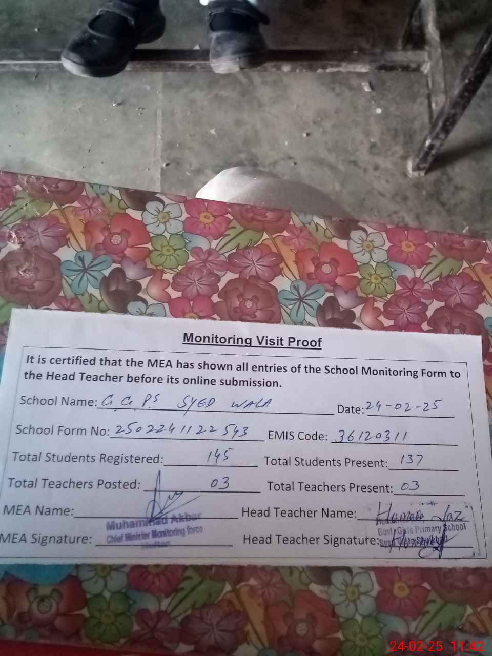 | EMIS Code: 36120311 | Name of School: GGPS SYED WALA SHUJABAD | |||