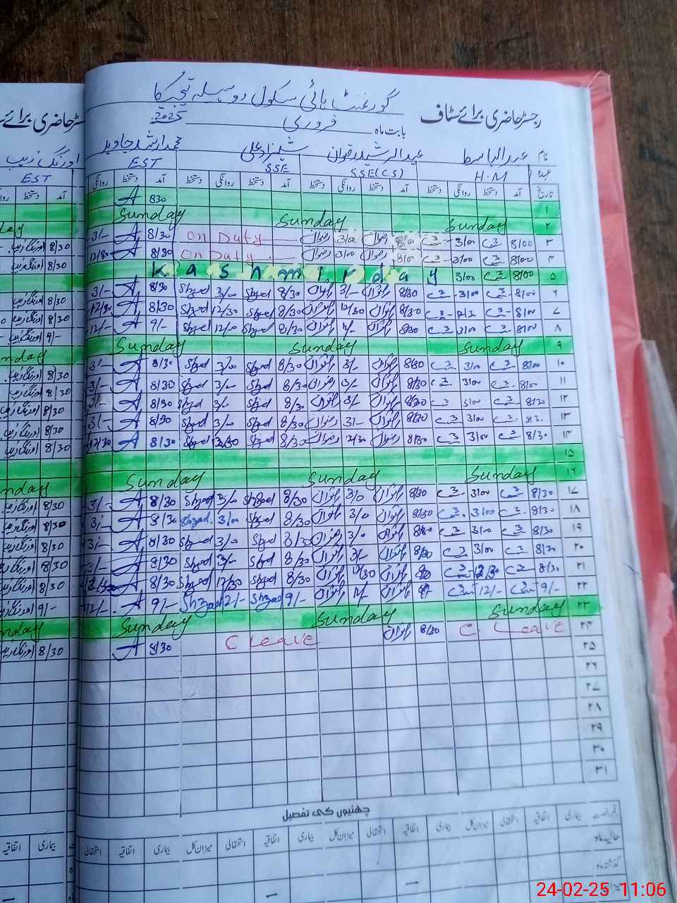 | CNIC | Full Name | Designation | R/C | Absence During Last Calender Month |