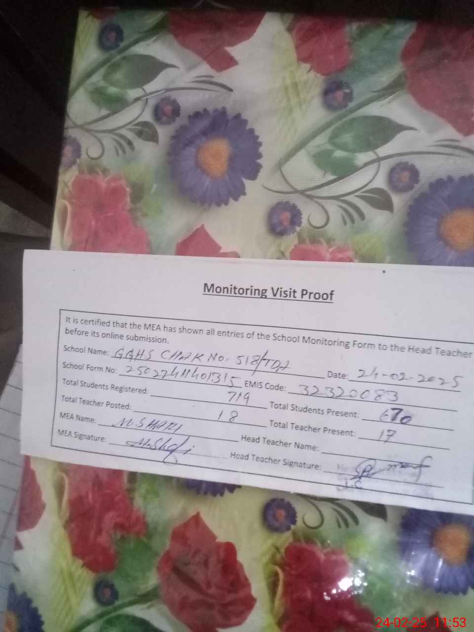 | EMIS Code: 32320083 | Name of School: GGHS CHAK NO. 518/TDA | |||