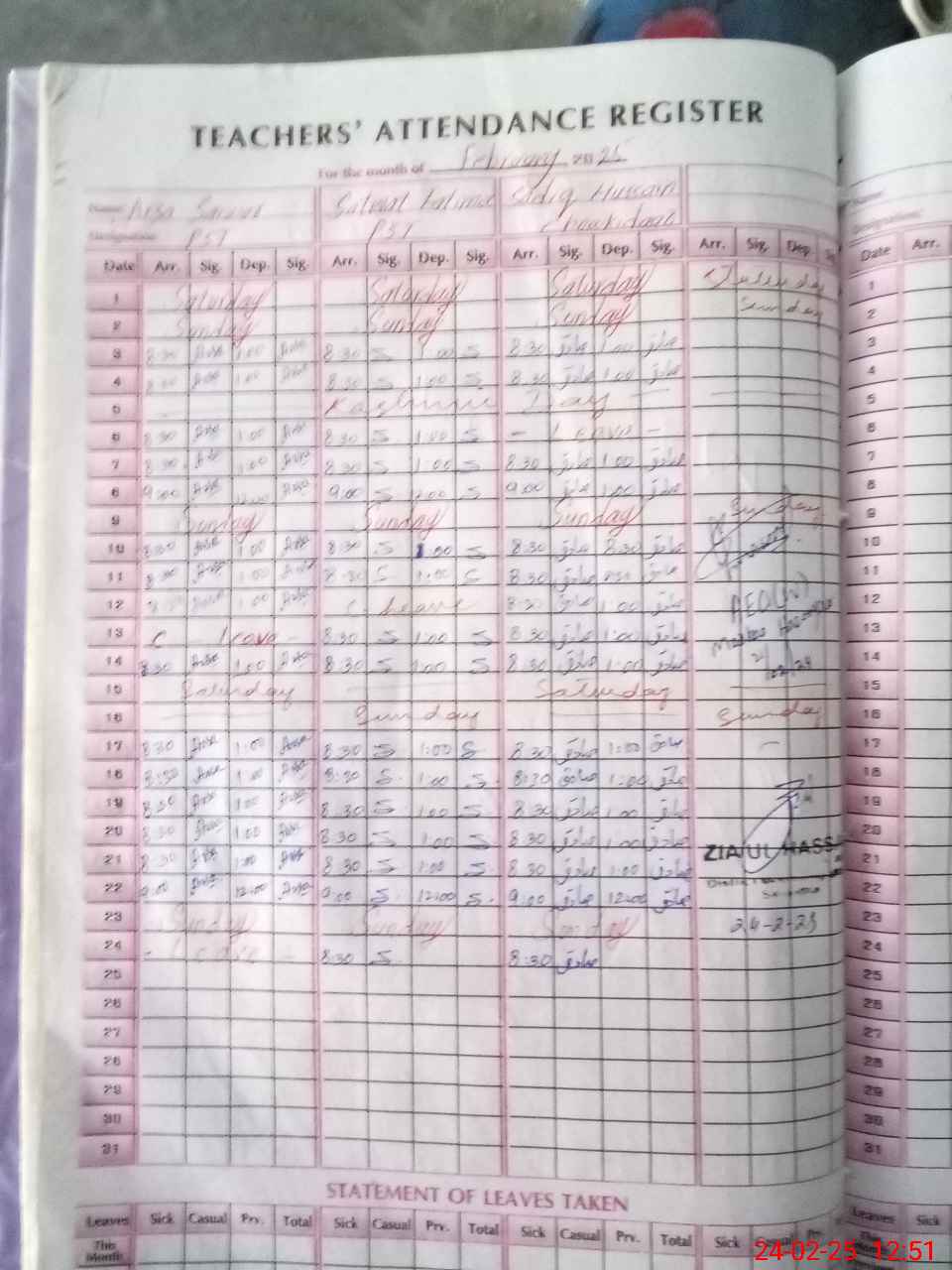 | Leave | Duty | Absent | Maternity | Medical | Ex- Pak |