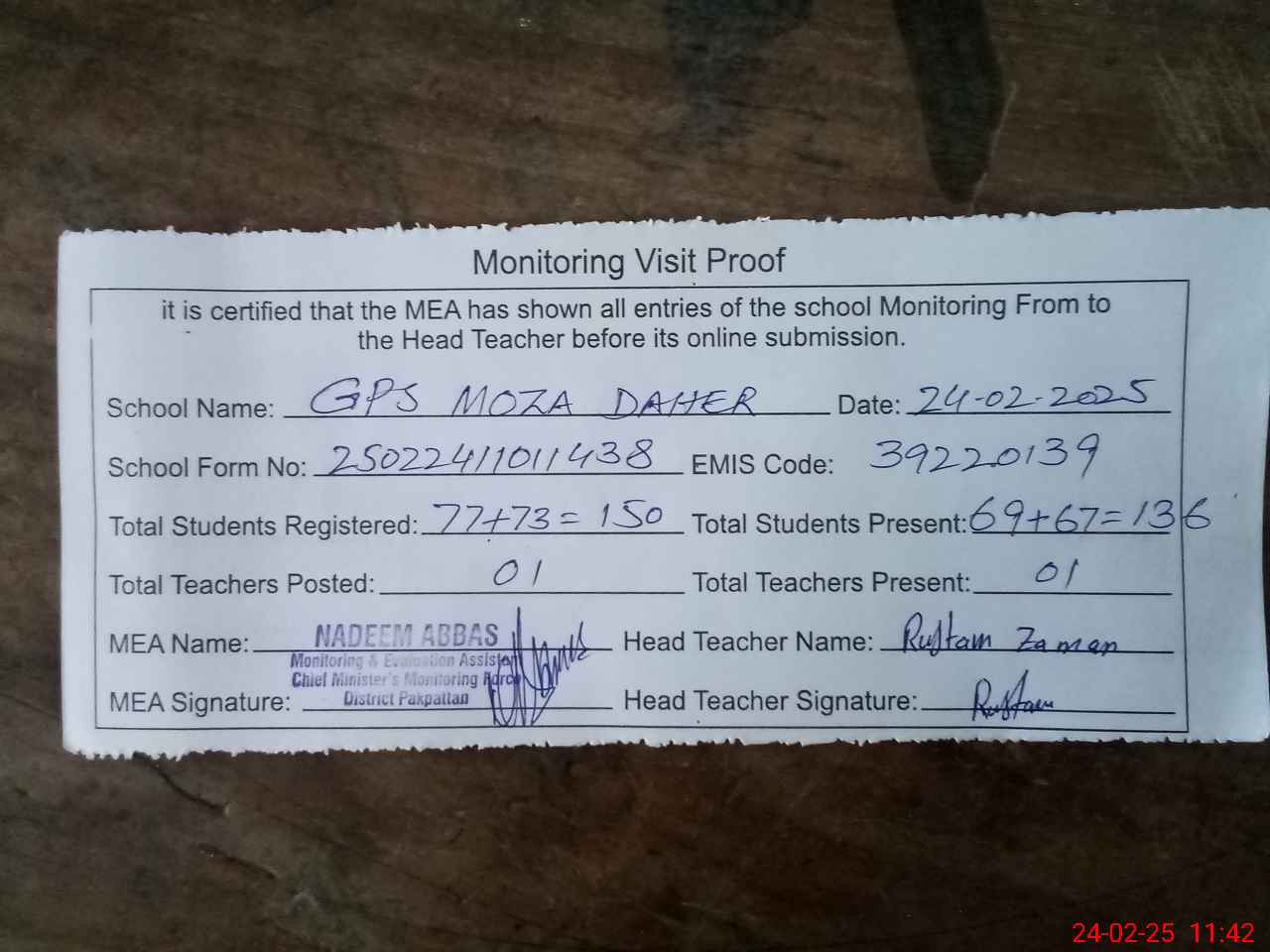 | EMIS Code: 39220139 | Name of School: GPS MOZA DAHER | |||