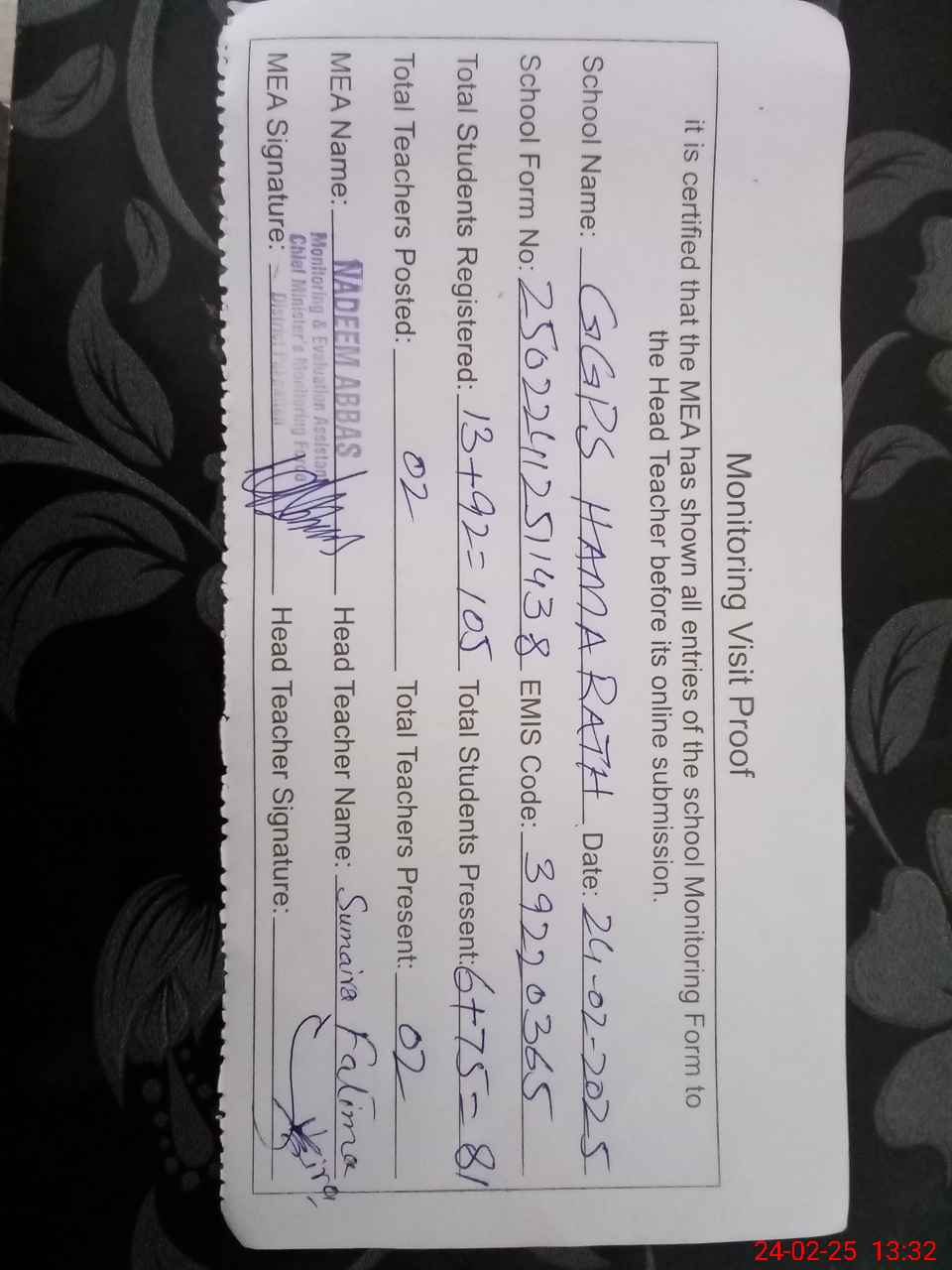 | EMIS Code: 39220365 | Name of School: GGPS HAMA RATH | |||