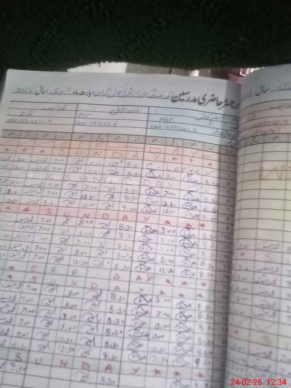 | CNIC | Full Name | Designation | R/C | Absence During Last Calender Month |