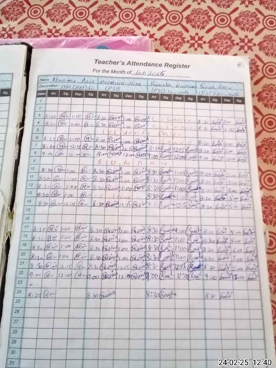 | CNIC | Full Name | Designation | R/C | Absence During Last Calender Month |