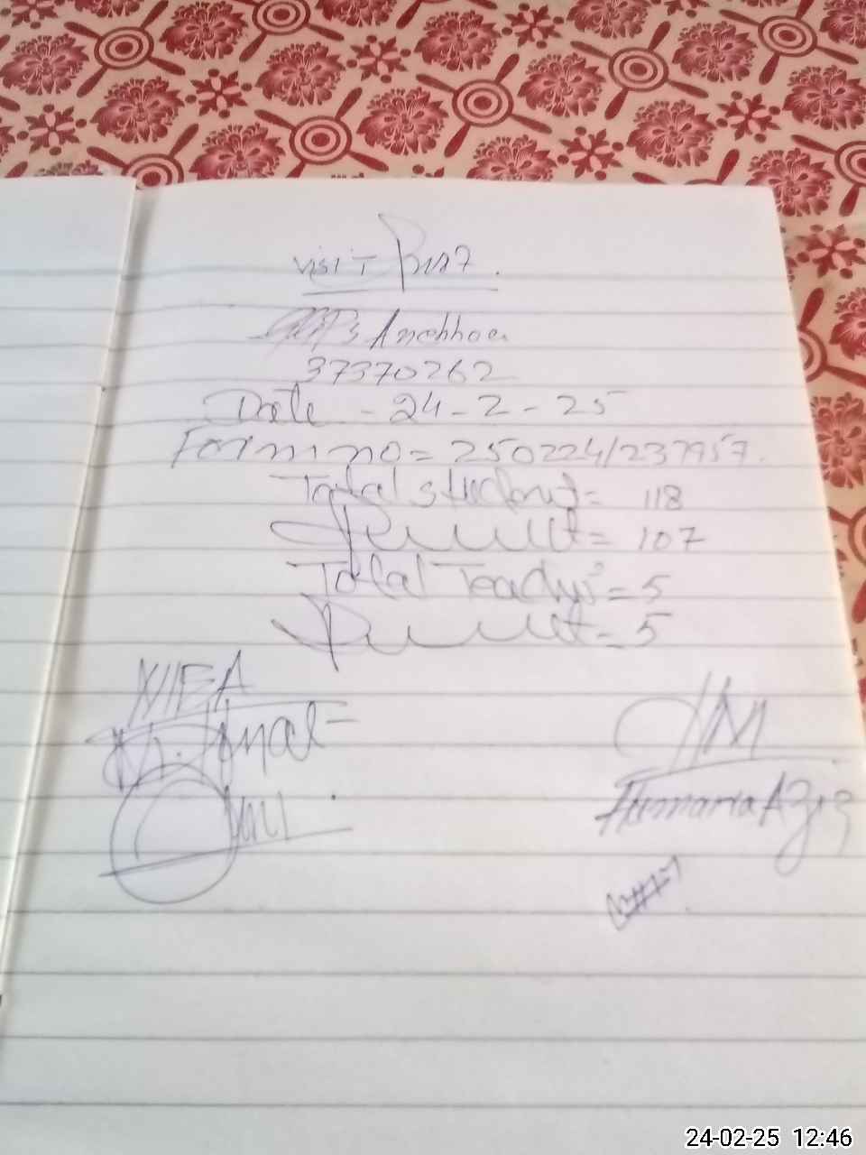 | Attendance Register | Head Teacher | MEA with School | Visit Proof |