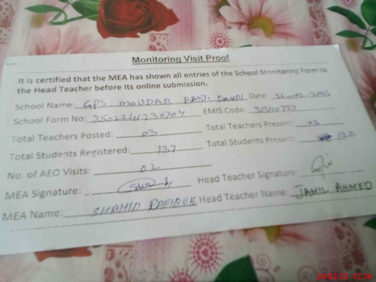 | EMIS Code: 31340737 | Name of School: GPS MOUDAB BASTI DHUNDI | |||