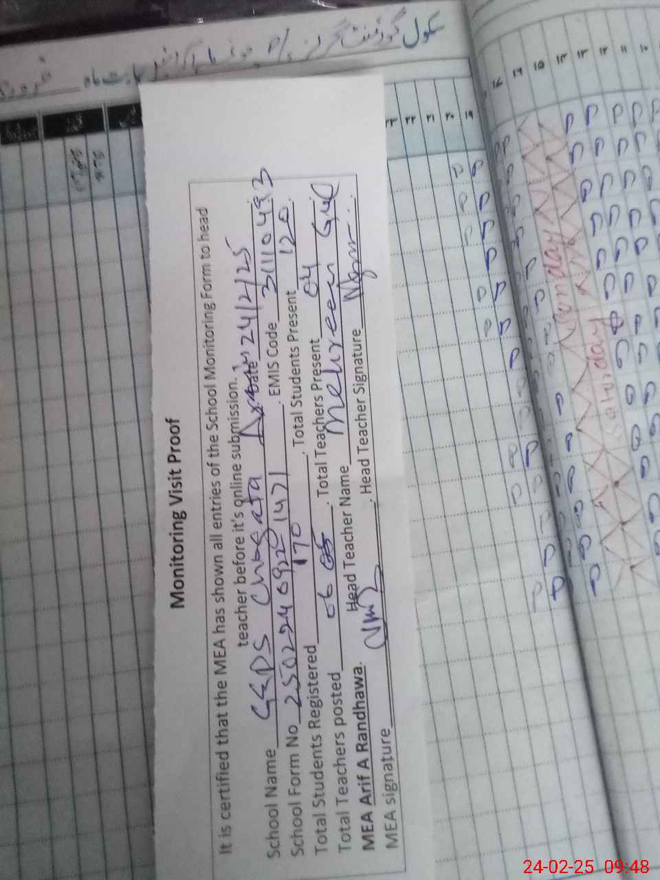 | EMIS Code: 31110493 | Name of School: GGPS CHOGATA ARAIN | |||
