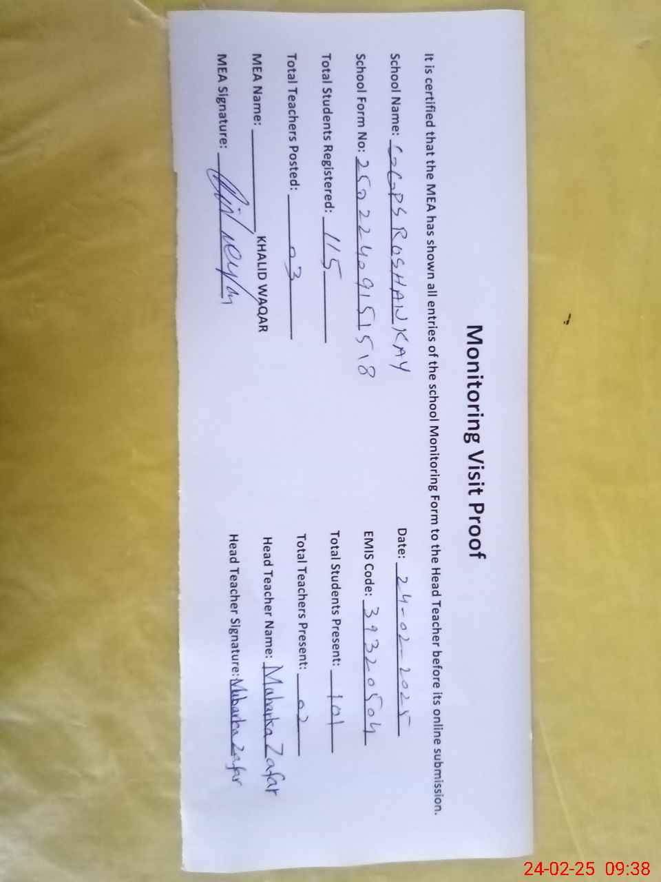 | EMIS Code: 39320504 | Name of School: GGPS ROSHAN KAY DHEERO KAY | |||