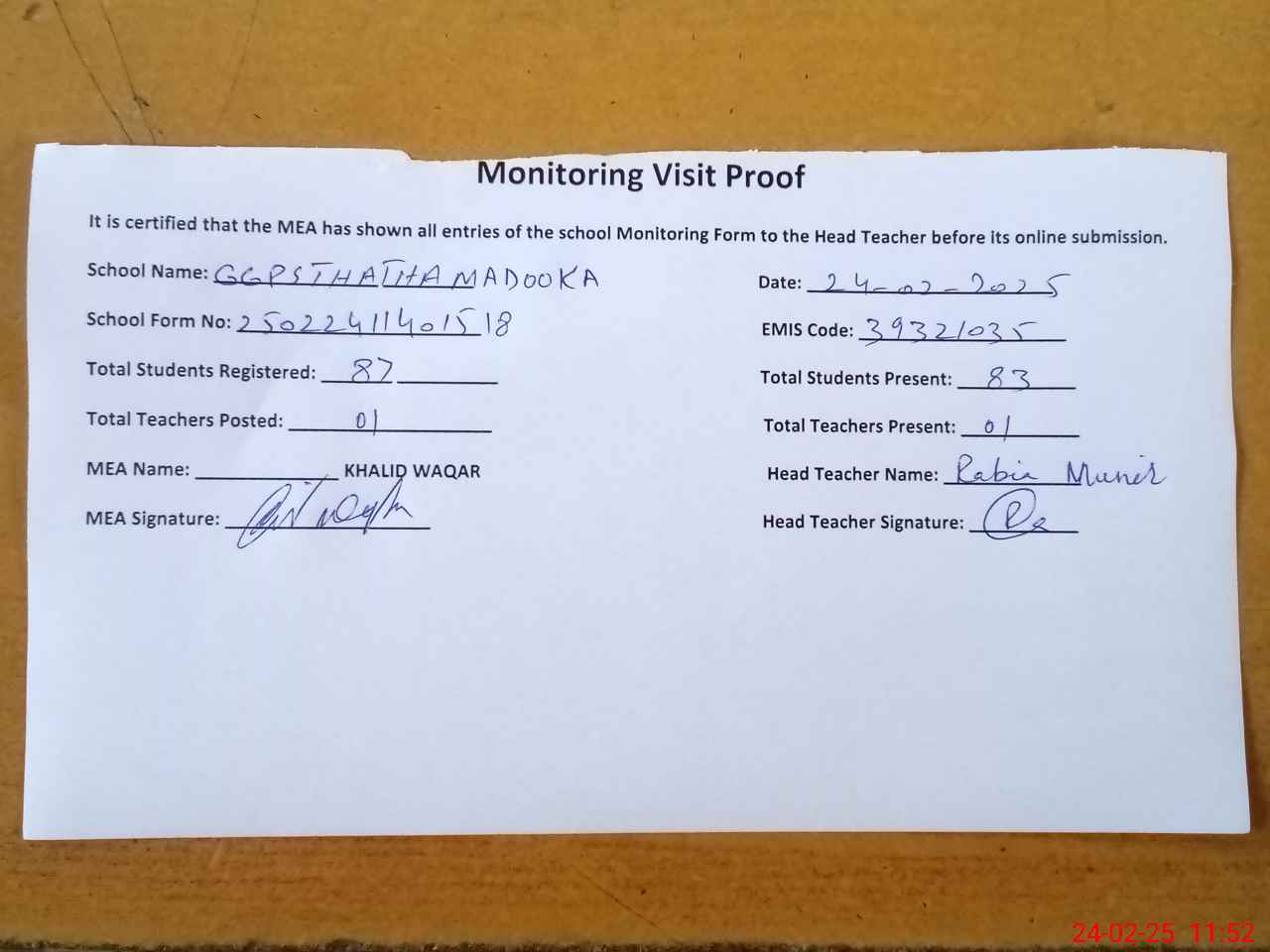 | EMIS Code: 39321035 | Name of School: GGPS THATHA MADOO KA | |||