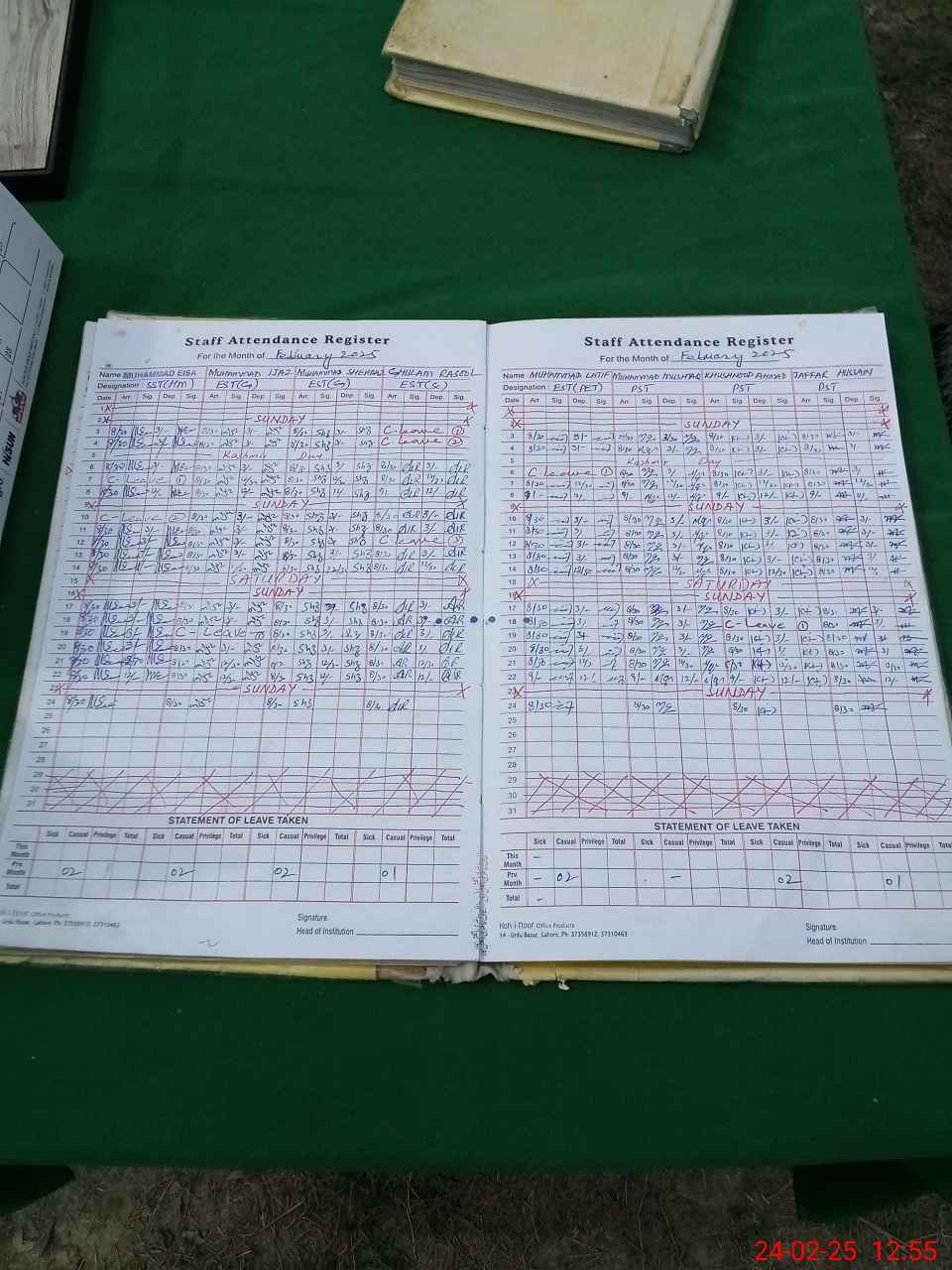 | CNIC | Full Name | Designation | R/C | Absence During Last Calender Month |