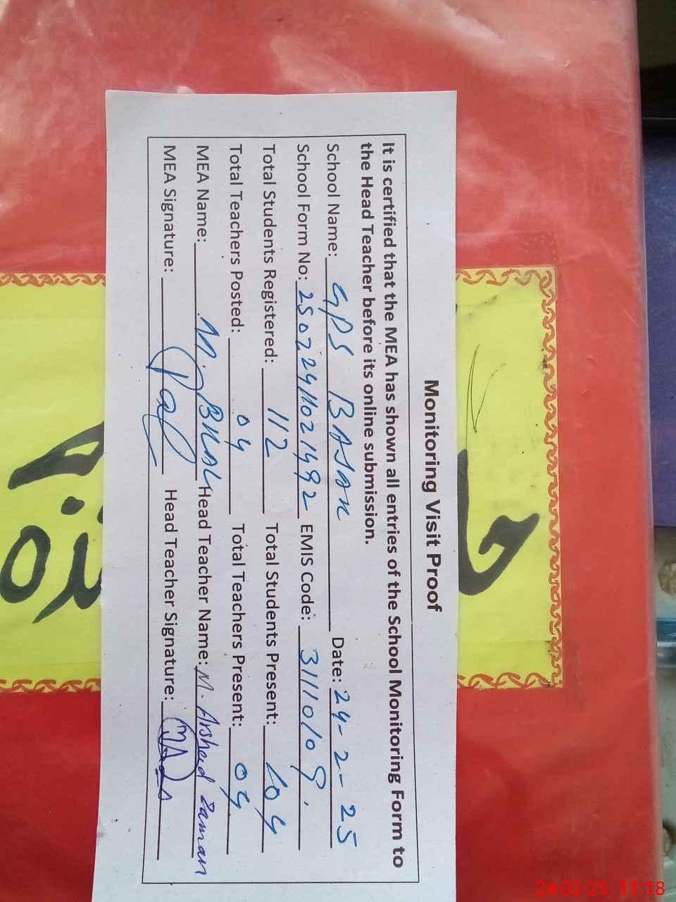 | EMIS Code: 31110109 | Name of School: GPS BAJAK | |||