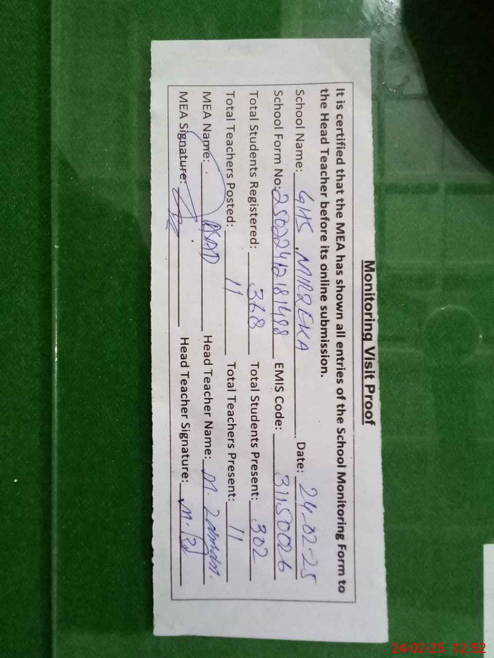 | EMIS Code: 31150026 | Name of School: GHS MIRZEKA | |||
