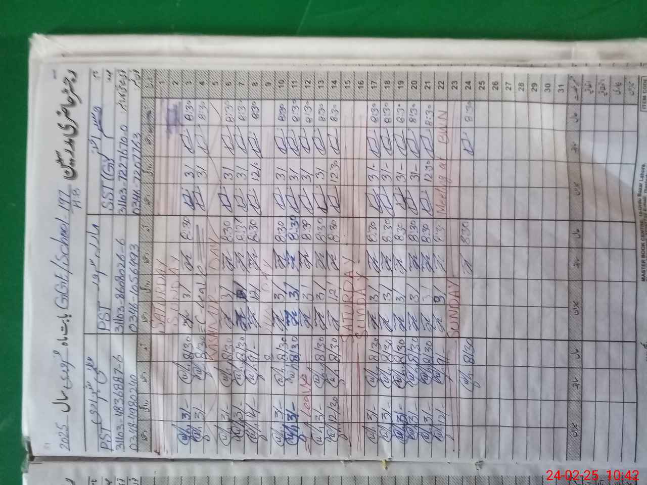 | CNIC | Full Name | Designation | R/C | Absence During Last Calender Month |