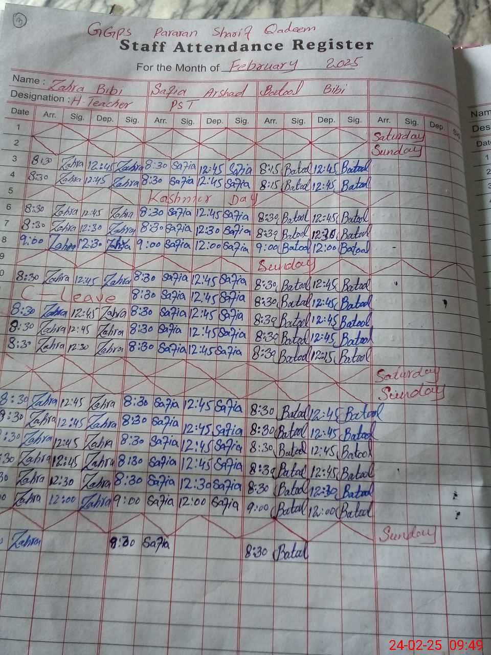 | Name: ZA**** BI**** Designation: (School Headmaster's/Headmistress's) PST/PTC/JV Phone/Cell Number: 03**** |