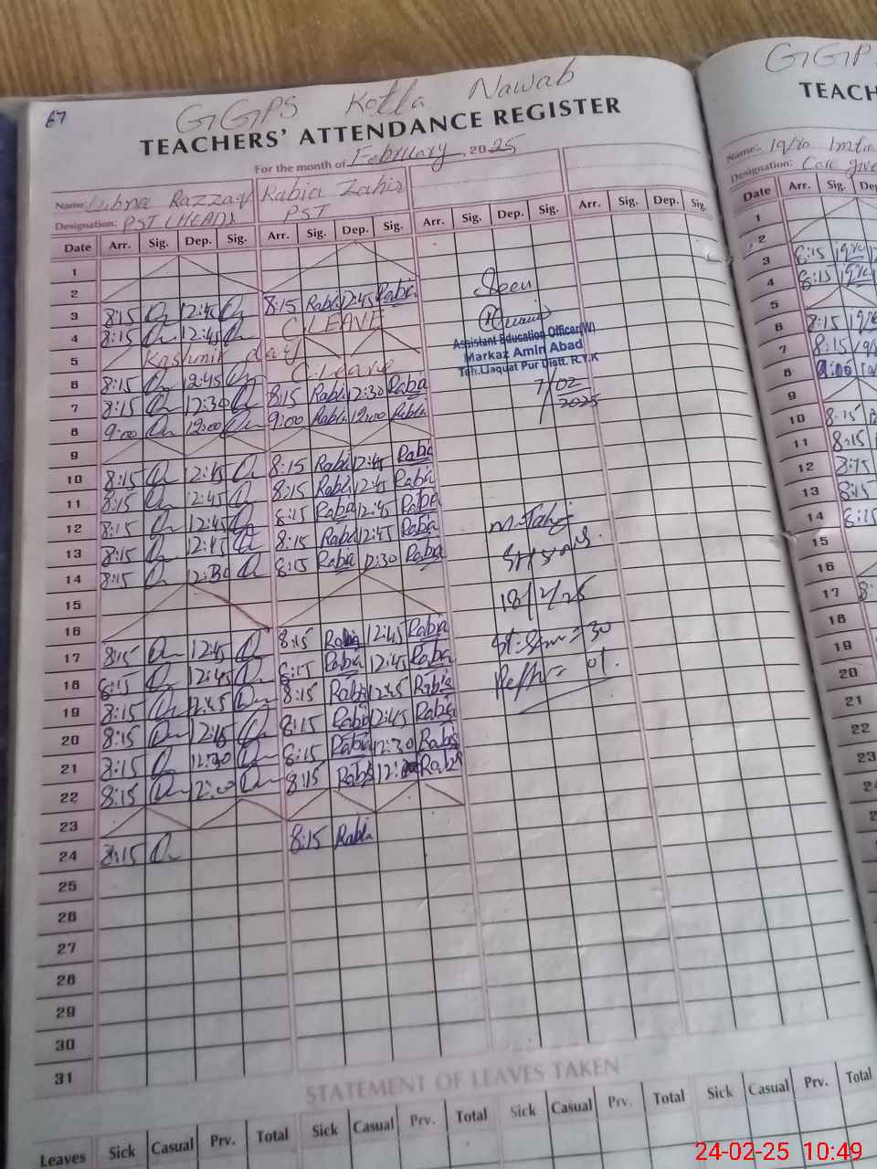 | Name: Lu**** Ra**** Designation: (School Headmaster's/Headmistress's) PST Phone/Cell Number: 03**** |