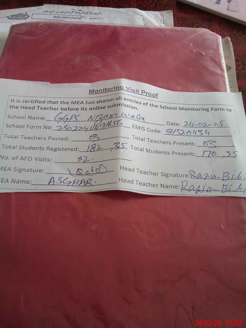 | EMIS Code: 31320434 | Name of School: GGPS NIZAM WALA | |||