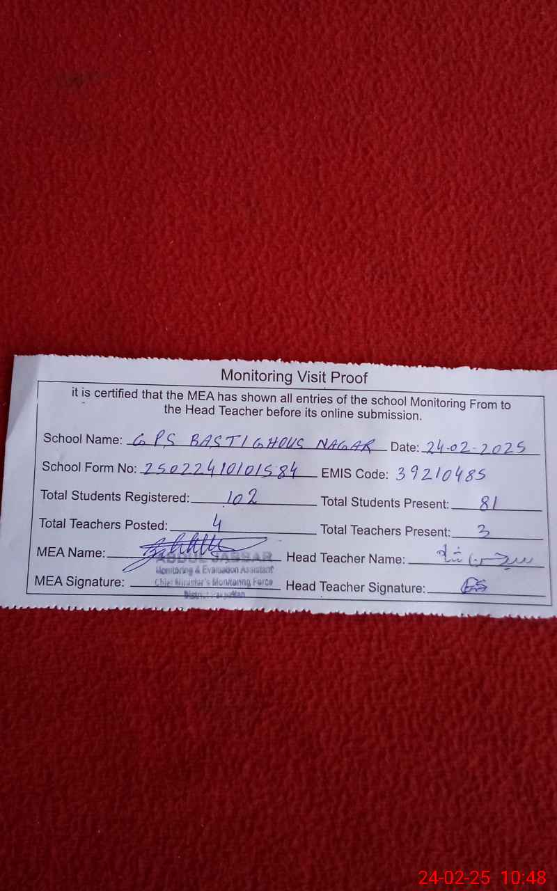 | EMIS Code: 39210485 | Name of School: GPS BASTI GHOUS NAGAR P/O PAKPATTAN | |||