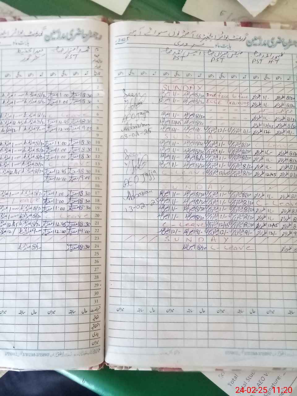 | CNIC | Full Name | Designation | R/C | Absence During Last Calender Month |