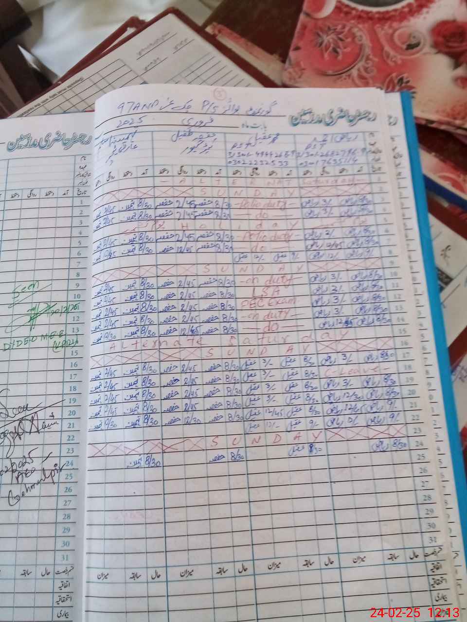 | Leave | Duty | Absent | Maternity | Medical | Ex- Pak |