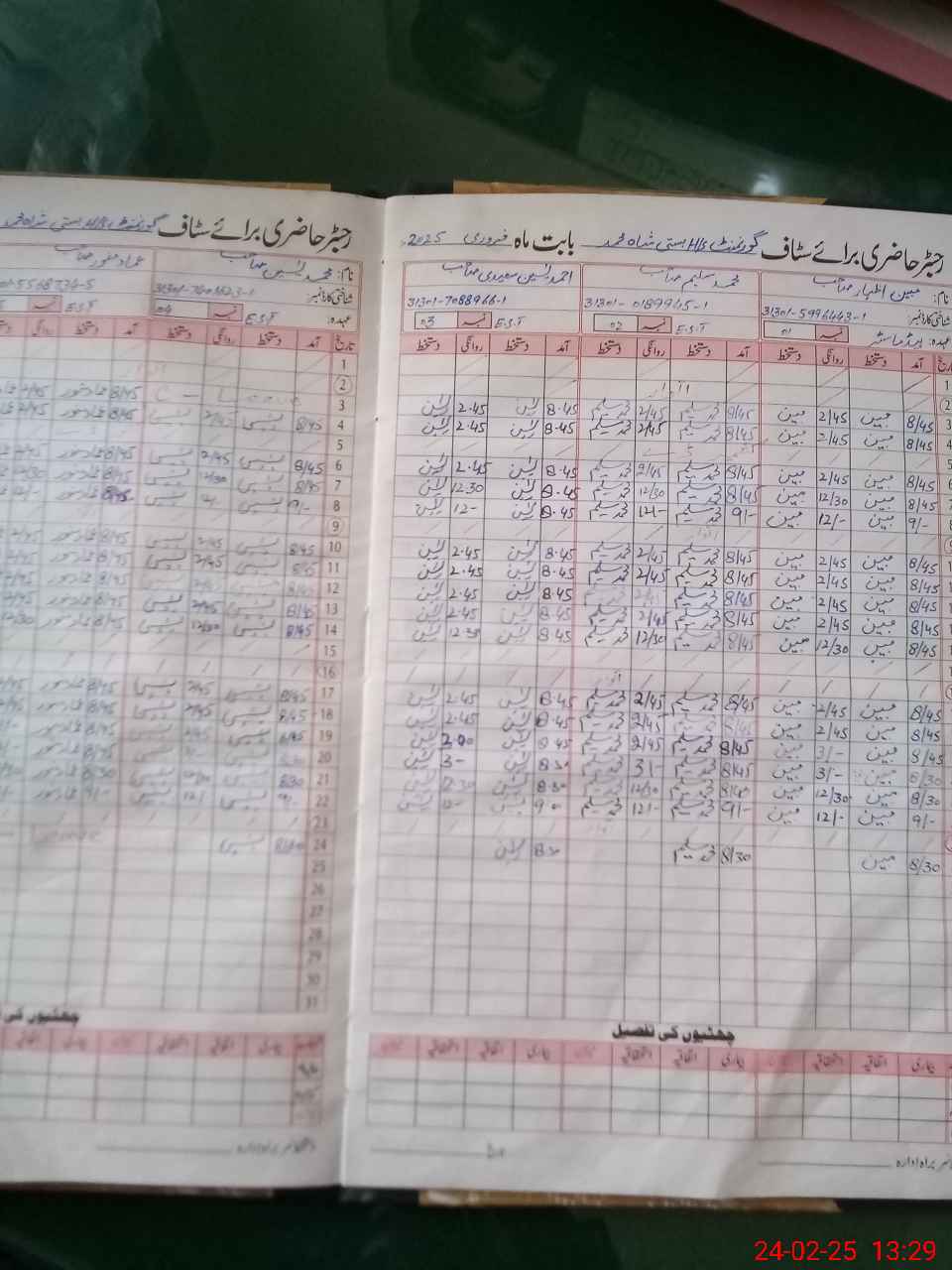 | CNIC | Full Name | Designation | R/C | Absence During Last Calender Month |