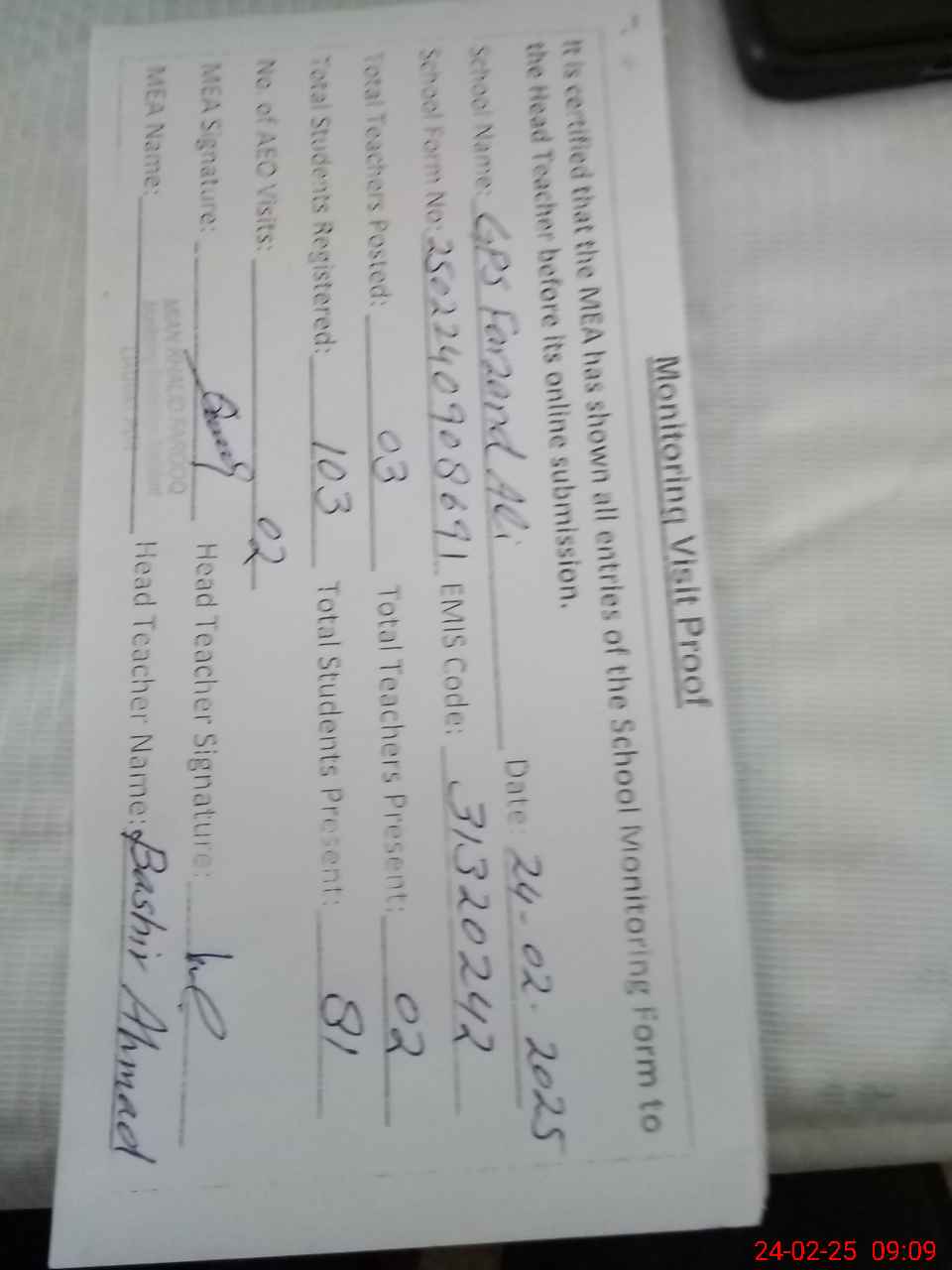 | Name: BA**** AH**** Designation: (School Headmaster's/Headmistress's) PST/PTC/JV Phone/Cell Number: 03**** |
