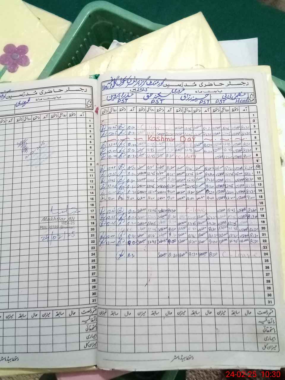 | Name: Uz**** Bi**** Designation: (School Headmaster's/Headmistress's) PST Phone/Cell Number: 03**** |